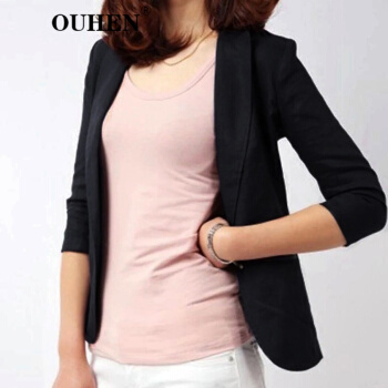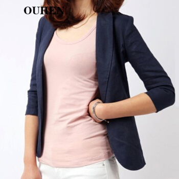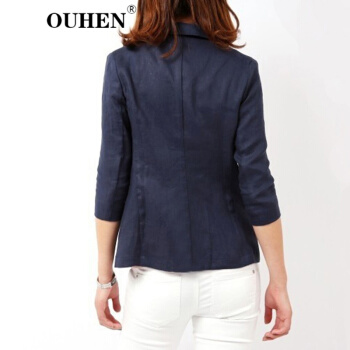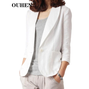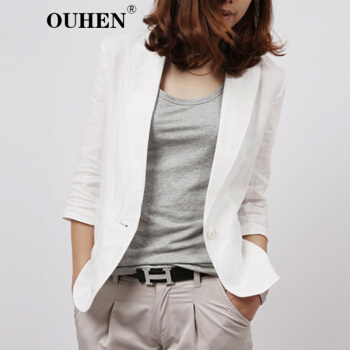 OUHEN高端品牌女装 亚麻小西装外套女夏季新款经典韩版休闲棉麻白色西服薄款上衣外套 白色 M |