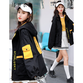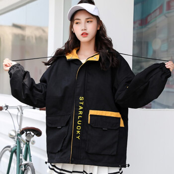 随影衣飘 短外套女秋季新品女装大码韩版百搭宽松bf棒球服工装学生外套女 黑色 M |