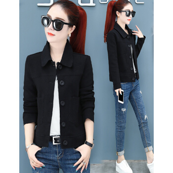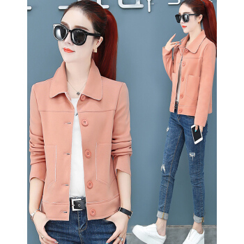 婪澈外套女春秋新款女装潮韩版宽松秋短款夹克工装女士小香风女上衣 粉桔 L |