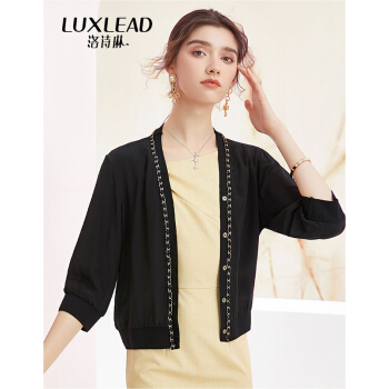 洛诗琳夏秋新款真丝开衫女重工链条拼接小外套透气百搭单品 付款4天发 付款4天发 黑色 XL |