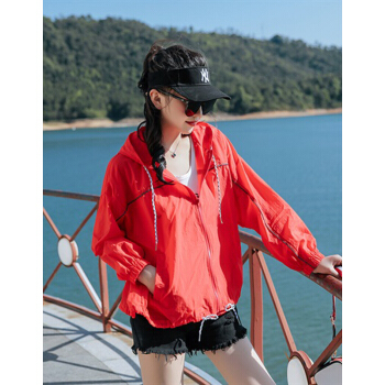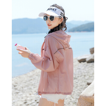 美连诚防晒衣女夏装宽松薄款短款防晒服长袖空调衫冰丝透气女士短外套 8601粉红 L |