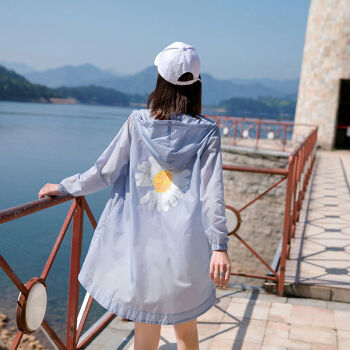 美连诚防晒衣女夏装宽松薄款中长款防晒服长袖空调衫冰丝透气女士短外套 蓝色 L |
