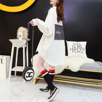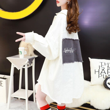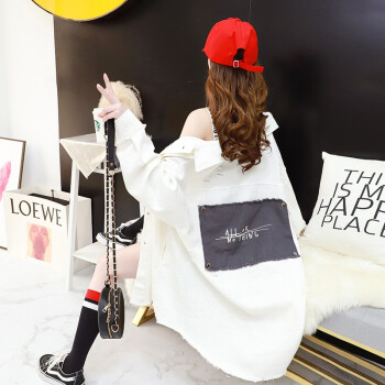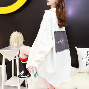 小赖猴韩版宽松牛仔外套女春秋2002新款早秋季小香风中长款牛仔衣 米白色 均码 |