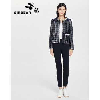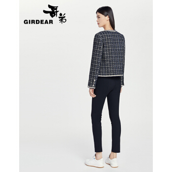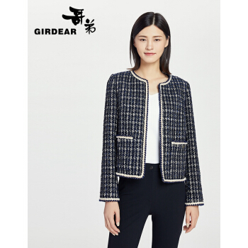 哥弟女装秋季新款名媛气质小香风上衣轻熟圆领外套女A400476 藏蓝 S(2码) |