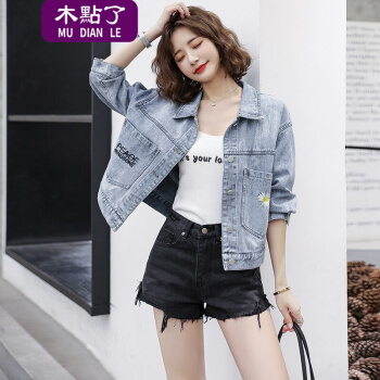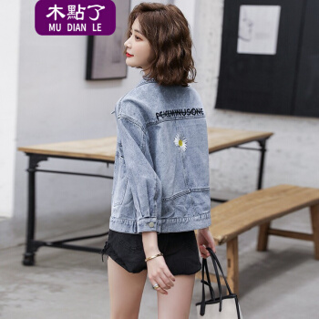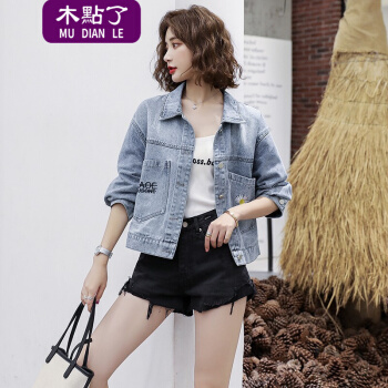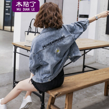 木點了 牛仔外套女秋新款时尚潮流舒适长袖宽松休闲气质短外套牛仔衣女2081A 图片色 M |