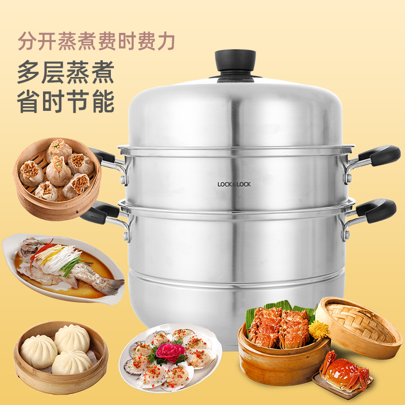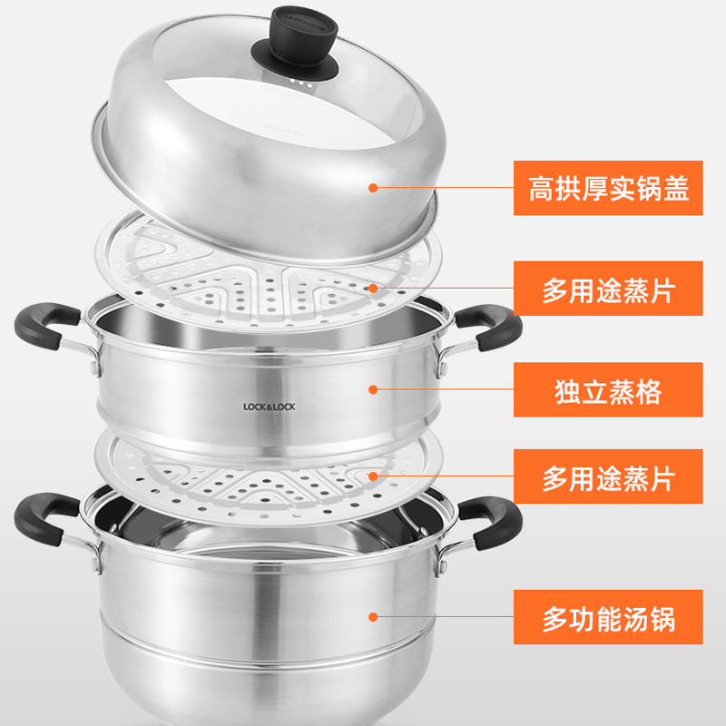 28cm加厚锅底炖锅304不锈钢汤锅高盖蒸锅三层蒸锅【304不锈钢/不锈钢】 |