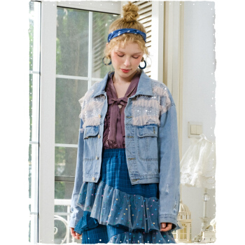 果酱公主秋季新款短款牛仔外套女宽松韩版ins风短外套KK 代荷 代荷 M |
