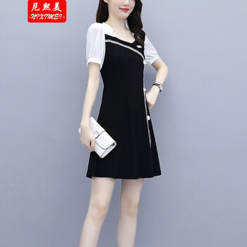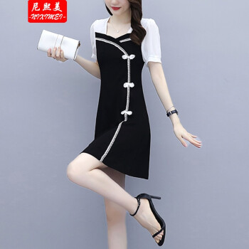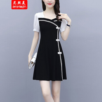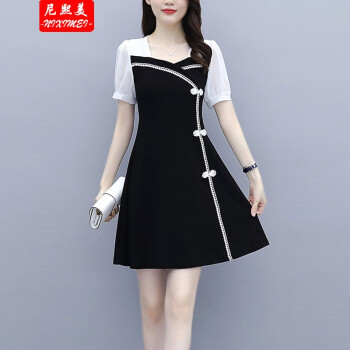 尼熙美 大码女装胖mm夏装新款胖妹妹气质宽松显瘦遮肚子小黑裙加肥加大小香风旗袍遮肉连衣裙 黑色 3XL 建议145-160斤 |