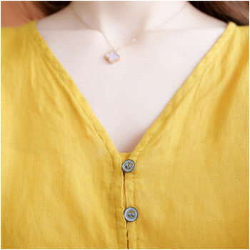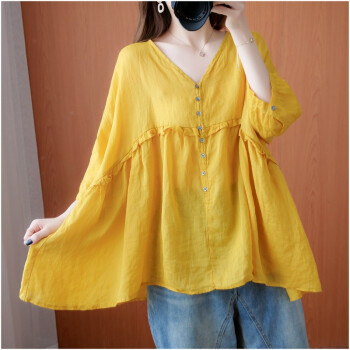 澳瑶芬 胖妹妹夏装棉麻休闲上衣大码女装胖mm纯色遮肚子显瘦加肥加大码胖人女装百搭衬衫 黄色 大码均码 (建议110-220斤) |