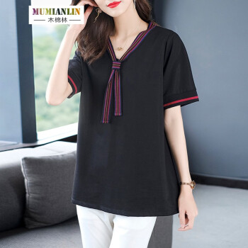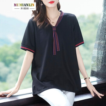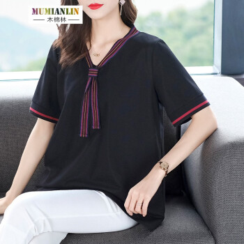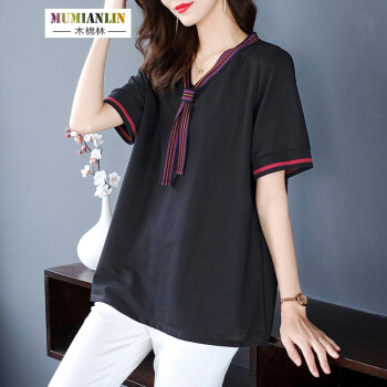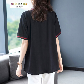 木棉林大码女装显瘦减龄遮肉t恤夏装新款胖mm宽松洋气中长款短袖上衣H202800 黑色 3XL建议160-180斤 |