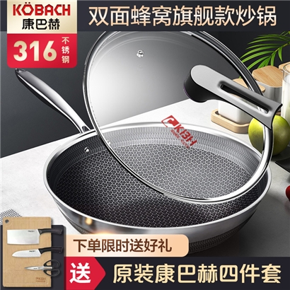 【超值单品】【送康巴赫厨房四件套】康巴赫316不锈钢双面屏旗舰款炒锅32cm【316不锈钢/图片色】 |
