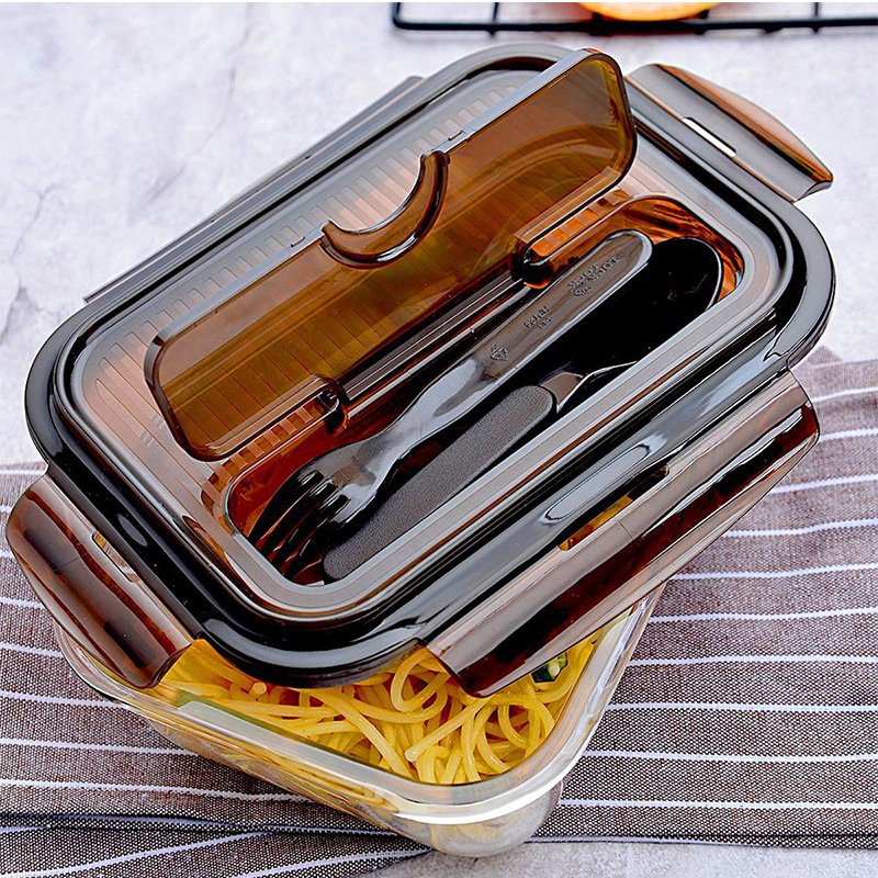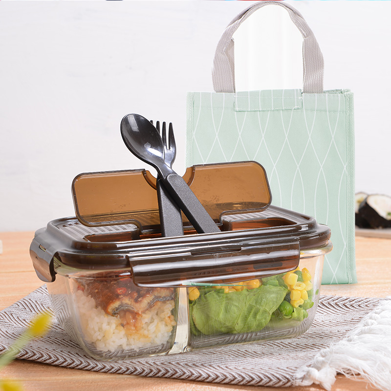 保鲜盒玻璃饭盒分隔便当盒微波炉专用碗加热上班族长方形 送时尚便当包【玻璃/透明】 |