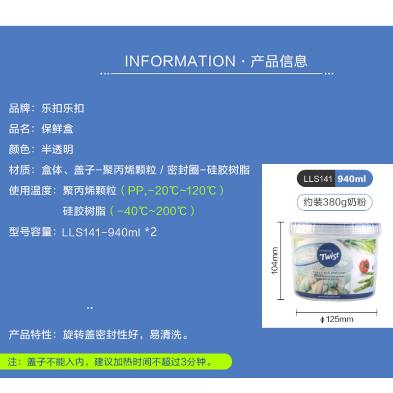 圆形塑料保鲜盒两只装 940ML*2【塑料/透明】 |