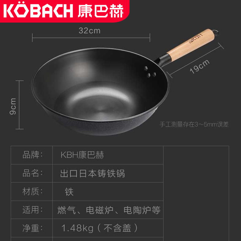 康巴赫炒锅32cm无涂层精制铸铁炒菜锅【铸铁/黑色】 |