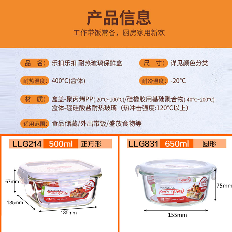 耐热玻璃保鲜盒微波炉适用饭盒500ML+650ML【玻璃/透明】 |