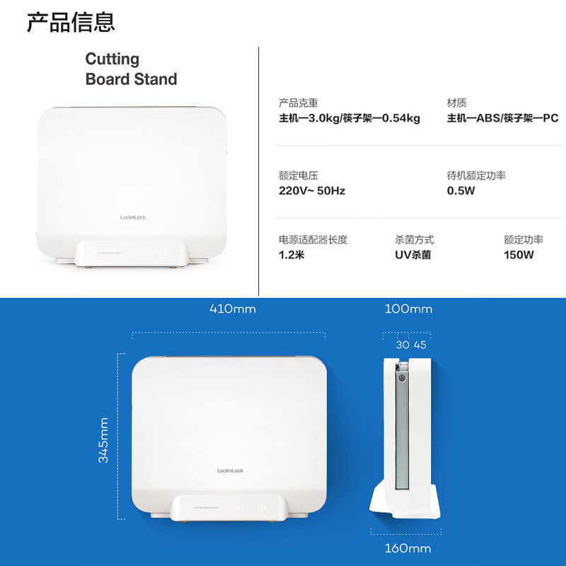 乐扣乐扣砧板消毒器刀具筷子家用小型紫外线烘干收纳架【主机-ABS/筷子架-PC/白色】 |