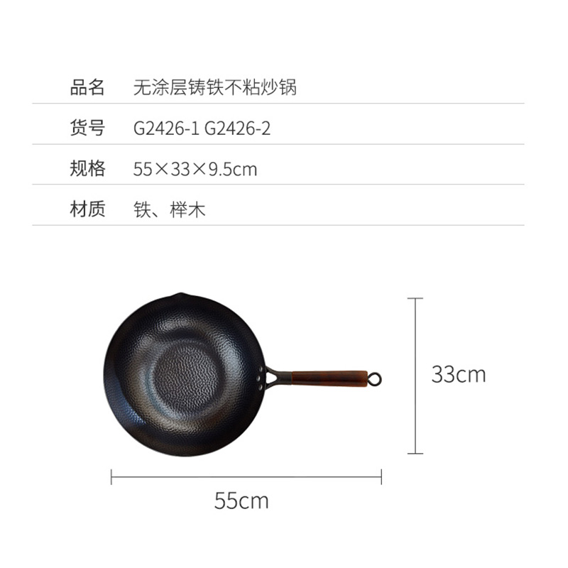 无涂层铸铁不粘炒锅(带盖)【铁 玻璃 PP/图片色】 |