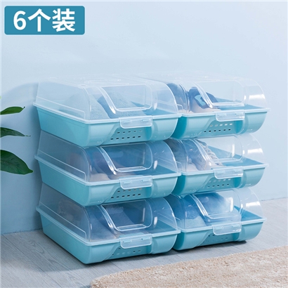 6个透明可视鞋盒收纳盒【PP/粉晶蓝】 |