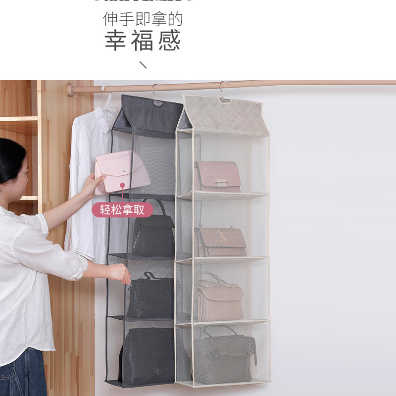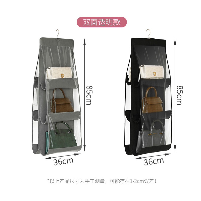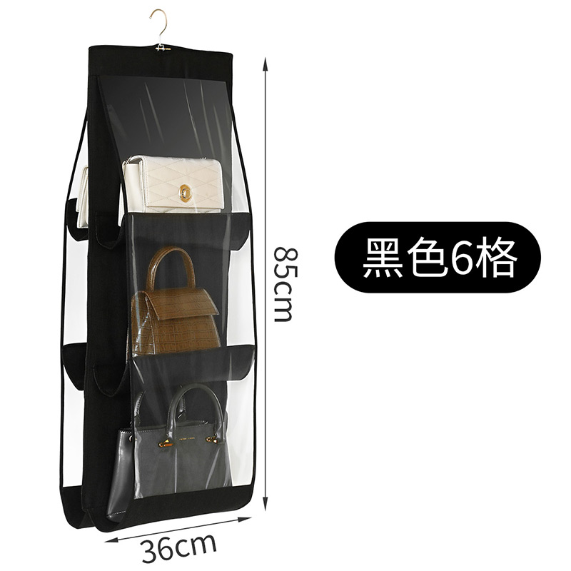 多层包包挂袋【无纺布+不锈钢挂钩/透明-黑色6格】 |