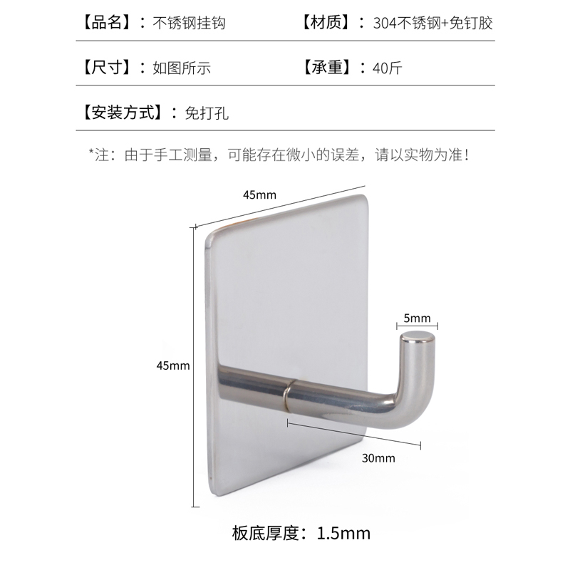 不锈钢挂钩8个【不锈钢+免钉胶/银色】 |