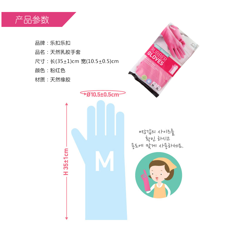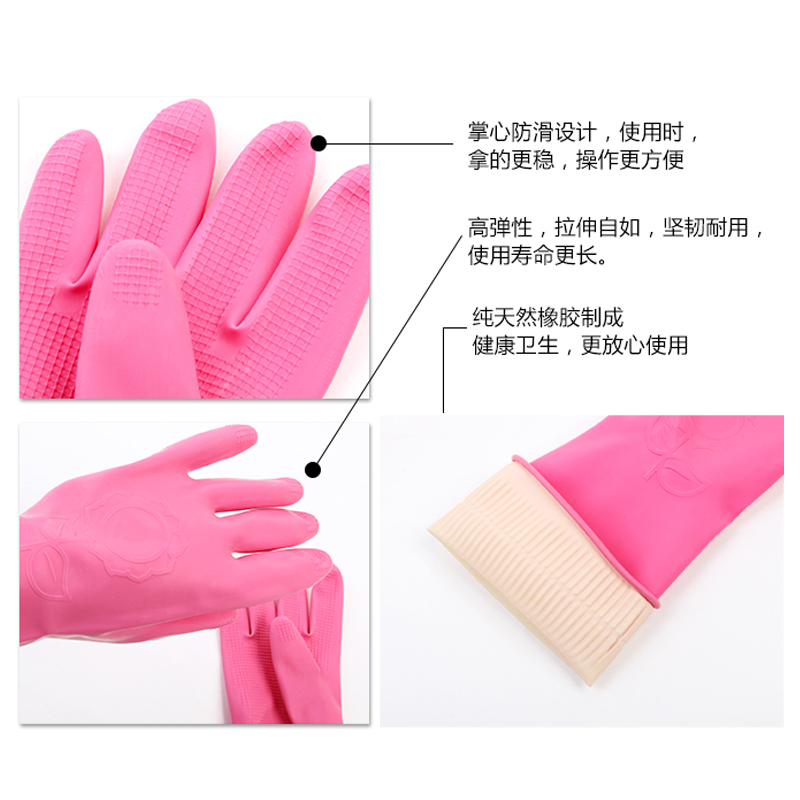 天然乳胶手套无异味安全健康耐用护手家务手套【天然乳胶/粉色】 |