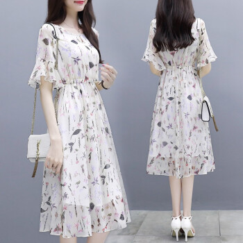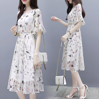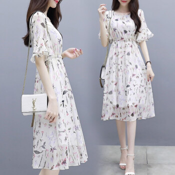 巷前 连衣裙夏季新款女装流行轻熟风温柔气质收腰显瘦碎花仙女超仙连衣裙子中长款 白色 M |