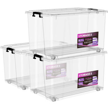 清野の木 高透塑料收纳箱 56L三个装XL特大号 透明加厚衣物整理箱玩具储物箱 |