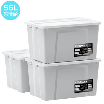 清野の木 56L灰色三个装特大号 塑料收纳箱整理箱环保加厚储物箱 |