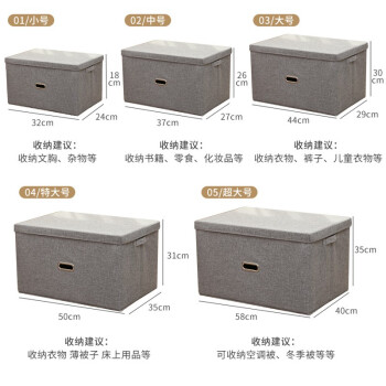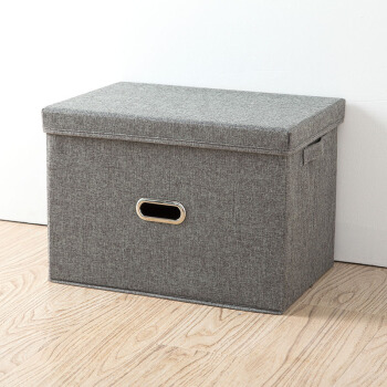 简纳 无纺布收纳箱整理箱收纳盒布艺箱子储物箱有盖亚麻收纳盒 灰色 大号(44*29*30) |