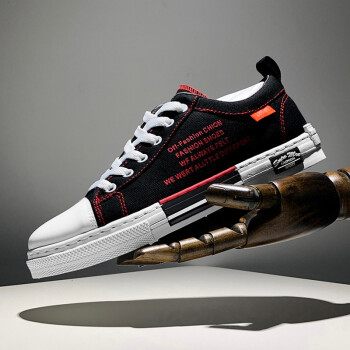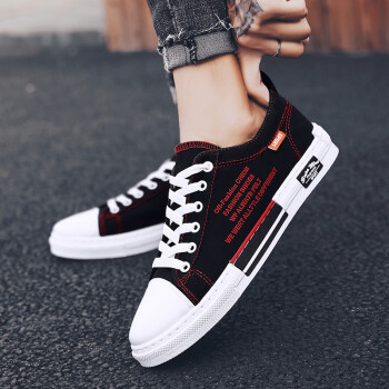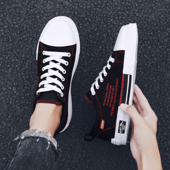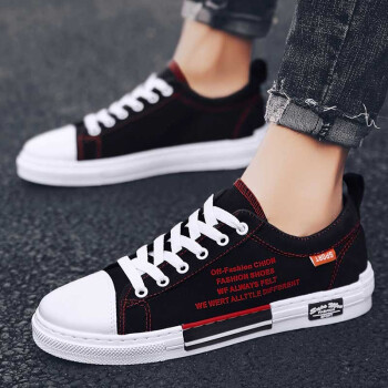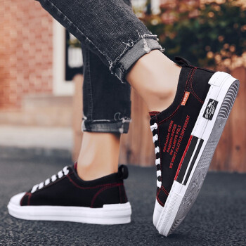 男鞋夏季新款休闲鞋男透气帆布鞋男百搭布鞋时尚四季板鞋低帮鞋男潮流户外运动鞋刑释运动鞋 Q88-黑红 41 |