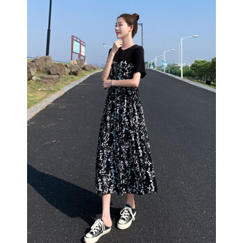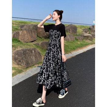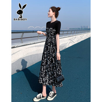 BABIBOY 连衣裙女夏季新款中长款时尚气质拼接碎花裙宽松洋气遮肚显瘦大码女装裙子女 图片色 M |
