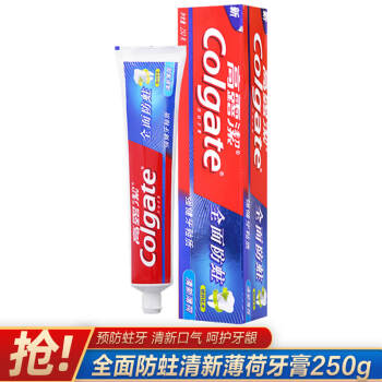 高露洁(Colgate) 全面防蛀清新薄荷牙膏 250g 清新口气 强健牙釉质(新老包装随机发) |