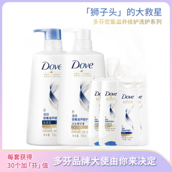 多芬(Dove)洗护发套装 密集滋养修护洗发乳700ml +护发素700ml+洗发乳100ml×2+护发素100ml×2 |