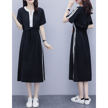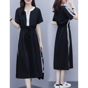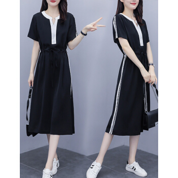 婪澈连衣裙女女装夏季新款遮肚子显瘦洋气大码女装胖妹妹时尚收腰中长款连衣裙女 图片色 请下正确尺码 |