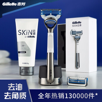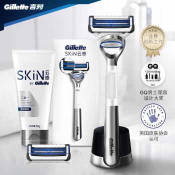 吉列(Gillette) 剃须刀刮胡刀手动 吉利云感小云刀组合装(1刀架2刀头+磁力底座+80g洗面奶洁面乳) |