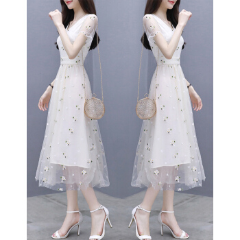 婪澈纯色连衣裙女女装夏季新款收腰显瘦气质流行A字裙女神范小个子裙子 图片色 请拍正确尺码 |
