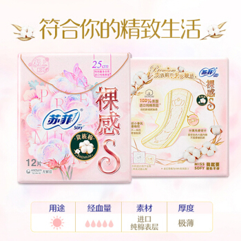 苏菲Sofy 裸感S进口纯棉超柔软贵族系列量多日用卫生巾250mm 12片 |