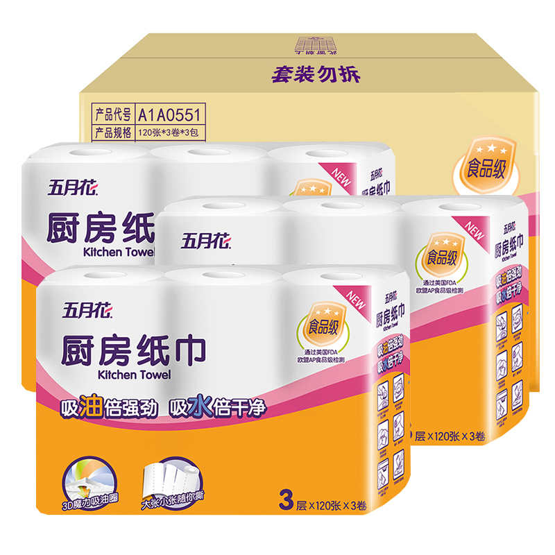 五月花食品级厨房卷纸吸水吸油纸 9卷 |