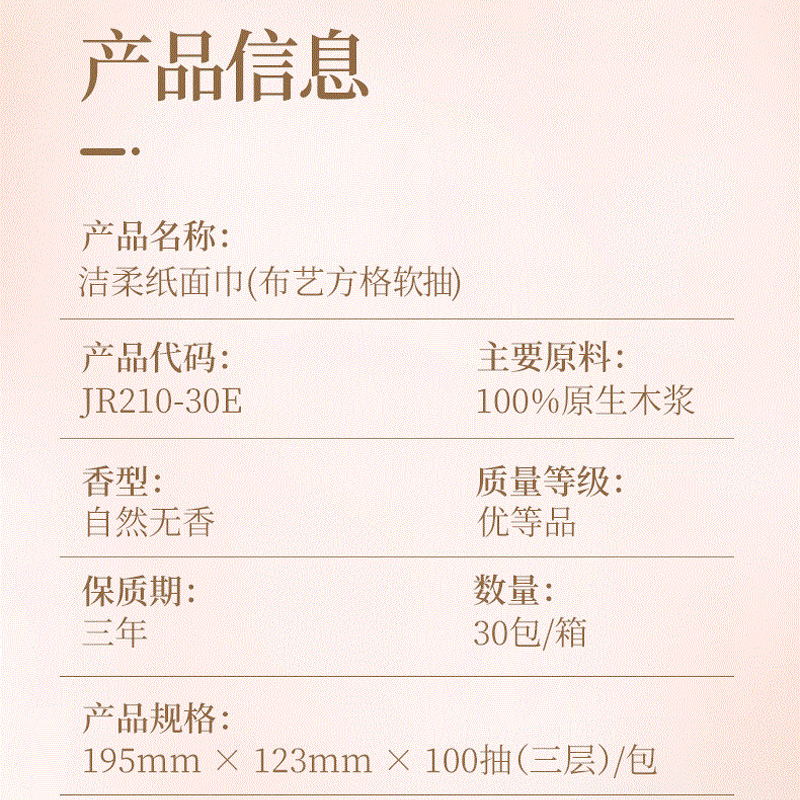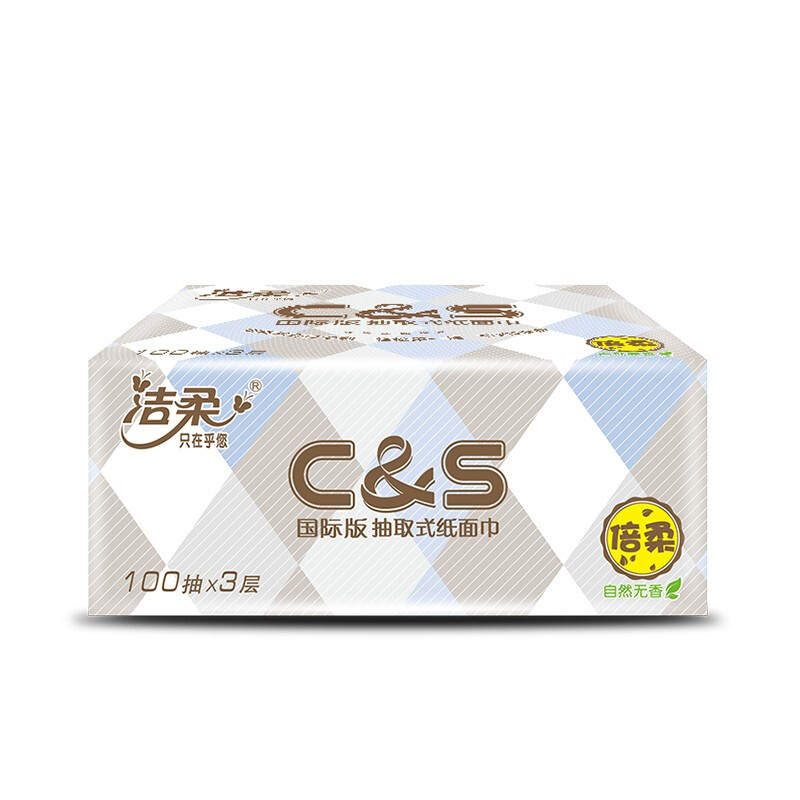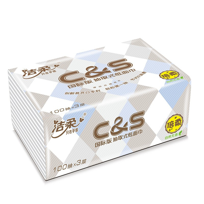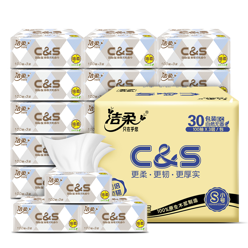洁柔纸面巾(布艺方格软抽)3层100抽30包 |