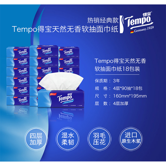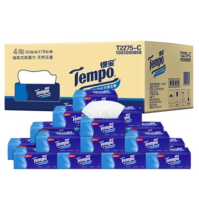 得宝4层抽取式面巾纸箱装18包×90抽(天然无香) |
