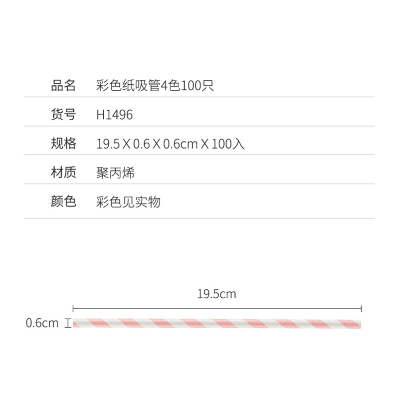 彩色纸吸管4色100只【聚丙烯/图片色】 |