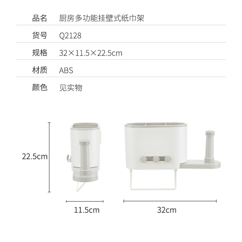 厨房多功能挂壁式纸巾架【ABS/图片色】 |