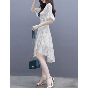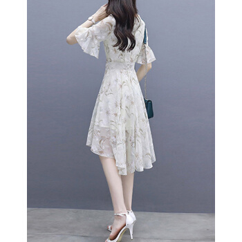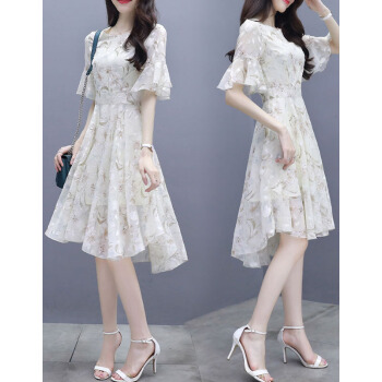 莱倪晟纳夏季女装连衣裙新品裙子女夏新款韩版中长款时尚性感显瘦印花两件套装沙滩裙 米白色 请拍正确尺码 |