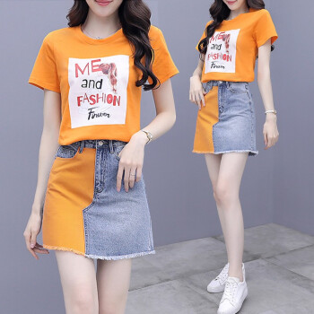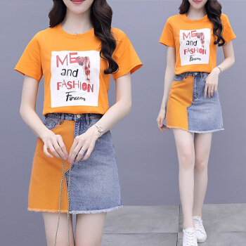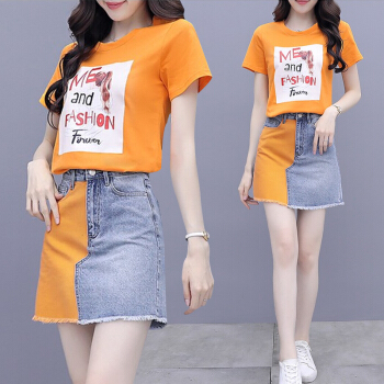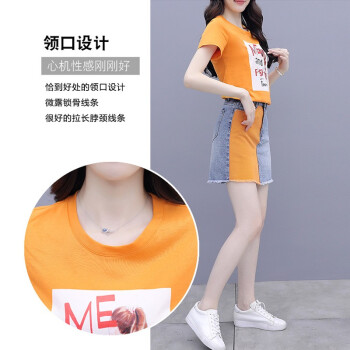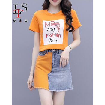 佬唐森牛仔连衣裙套装女夏季新款百搭显瘦套装半身裙子洋气两件套 图片色 请拍正确尺码 |
