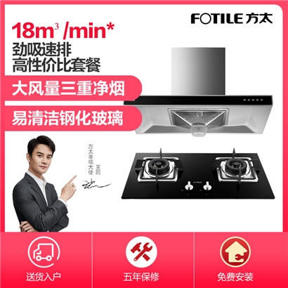 EH37+FD23BE 三重净烟 18m3/min大风量 4.1KW*大火力 烟灶套装【不锈钢+钢化玻璃/黑色】 |