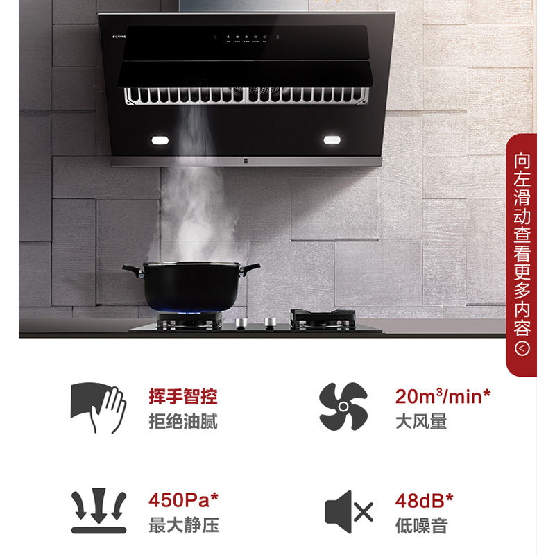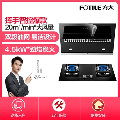 JQD2T+TH2B 手感智控 20m3/min*大风量 4.5KW*大火力 节能省气 烟灶套装【不锈钢+钢化玻璃/黑色】 |