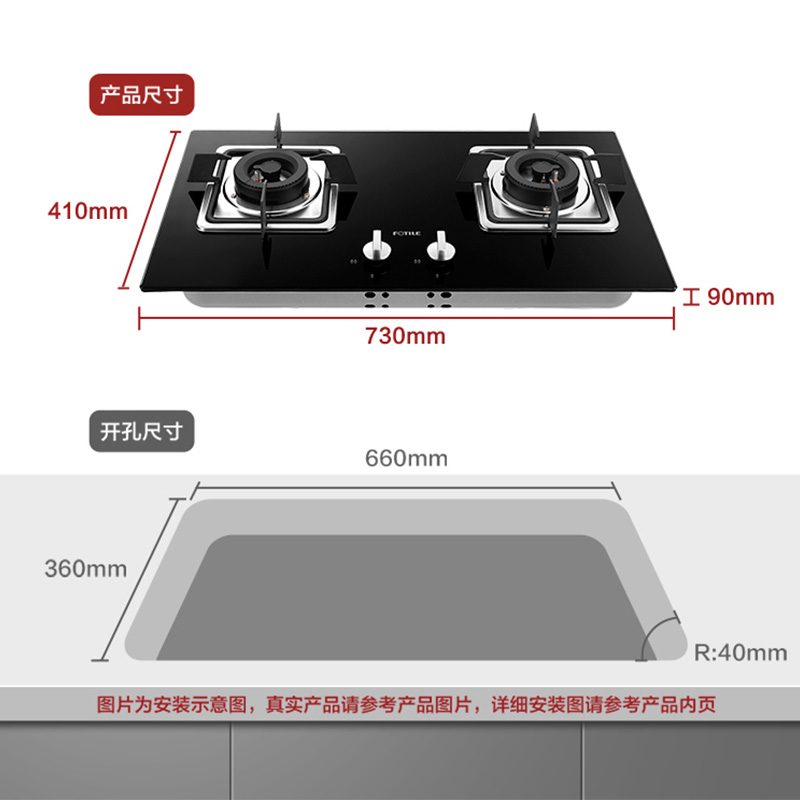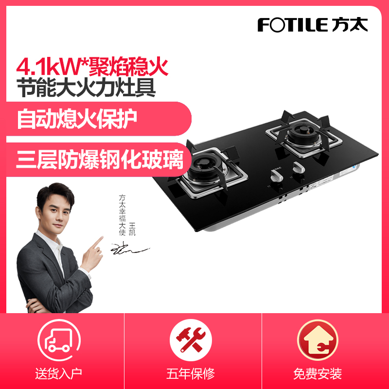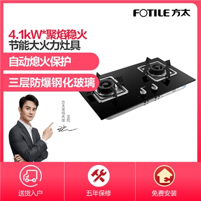FD23BE 三层防爆钢化玻璃 4.1KW*大火力 自动熄火保护 燃气灶【钢化玻璃/黑色】 |