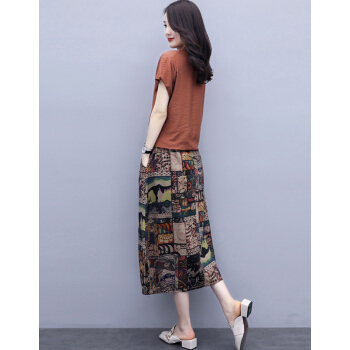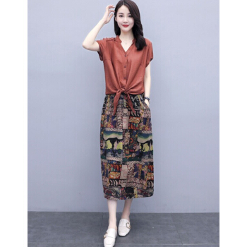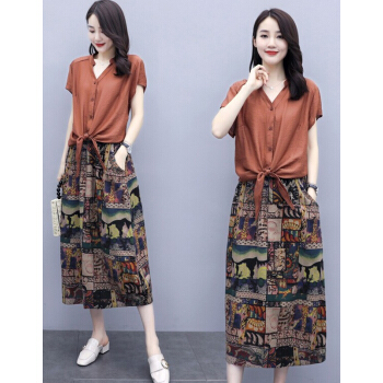 苏洛琳雪纺连衣裙女夏季新款大码女装时尚气质女士棉麻中长印小个子碎花连衣裙蕾丝两件套装裙子女 图片色 M |