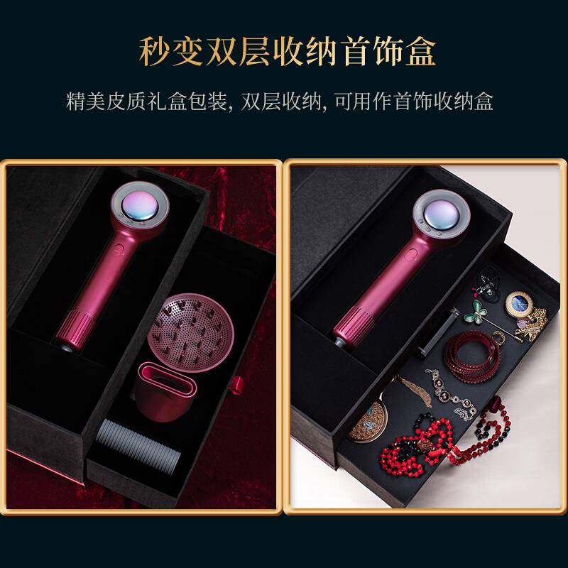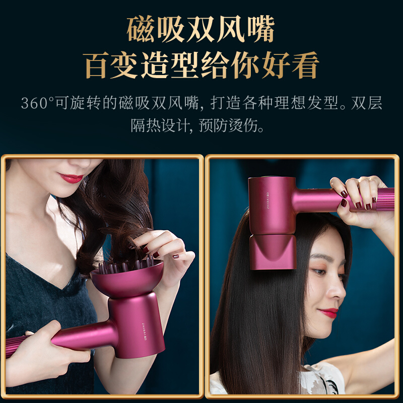 直白HL906负离子高速吹风机磁吸双风嘴低温护发黑科技变频风高端礼盒吹风机【ABS/红色】 |