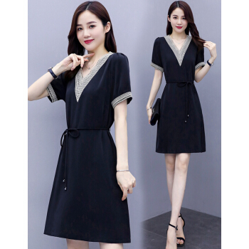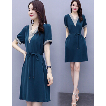 婪澈连衣裙女中长款女装夏季蕾丝镂空v领气质新款流行短袖显瘦透气裙子 蓝色 请下正确尺码 |